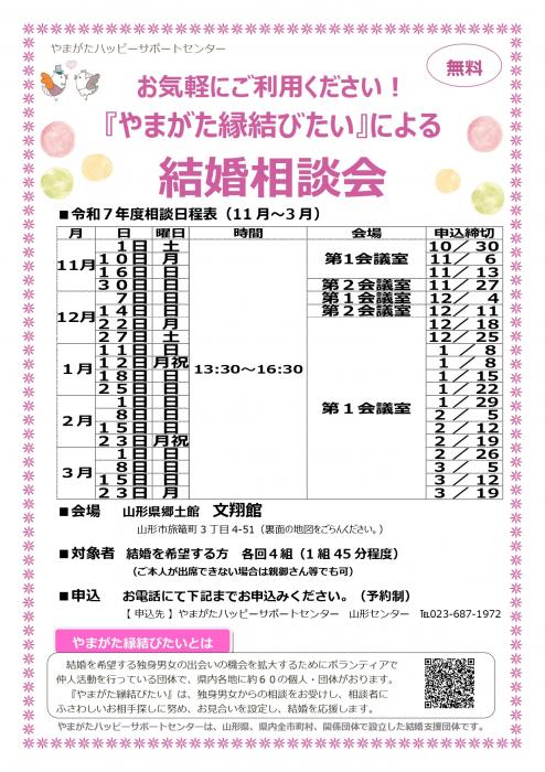 お気軽にご利用ください!『やまがた縁結びたい』による結婚相談会【山形会場】 <やまがたハッピーサポートセンター>
