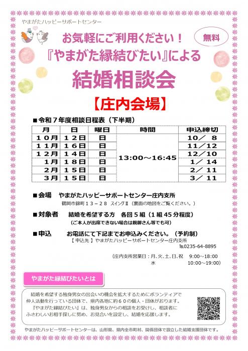 お気軽にご利用ください!『やまがた縁結びたい』による結婚相談会【庄内会場】 <やまがたハッピーサポートセンター>
