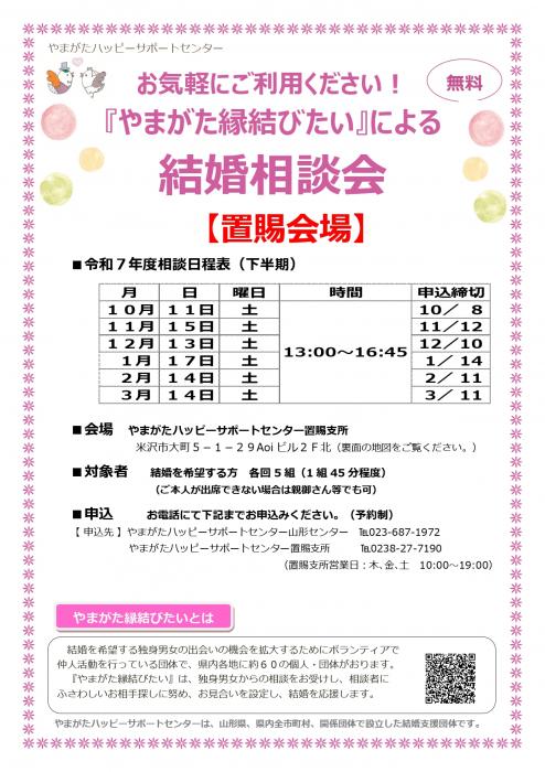 お気軽にご利用ください!『やまがた縁結びたい』による結婚相談会【置賜会場】 <やまがたハッピーサポートセンター>