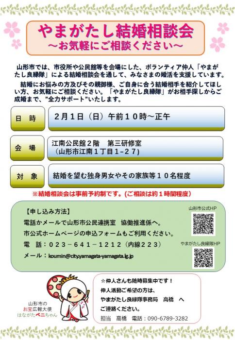 やまがたし結婚相談会~お気軽にご連絡ください~ <山形市>
