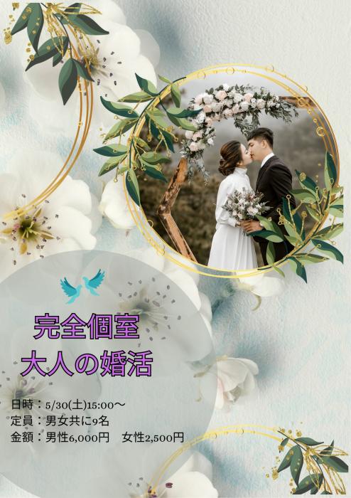 5月2回目完全個室大人の婚活≪男性35歳~45歳・女性33歳~48歳の独身男女≫ <Bee8[ビーエイト]>